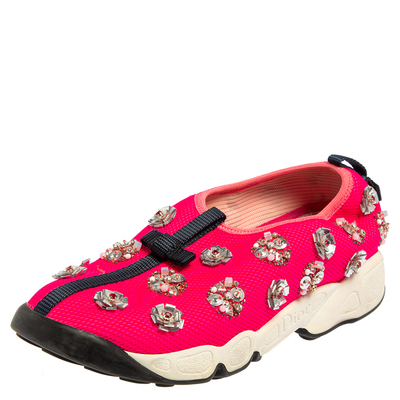 The words edgy and ultra modern can be readily attributed to this pair from Dior. The sneakers were first introduced as a part of their Haute Couture Spring / Summer 2014 collection. Crafted from mesh, they feature embellishments and are set on tough rubber soles. Trendy detailing, along with the brands lettering on the midsoles enhances and makes the sneakers worth your buy.