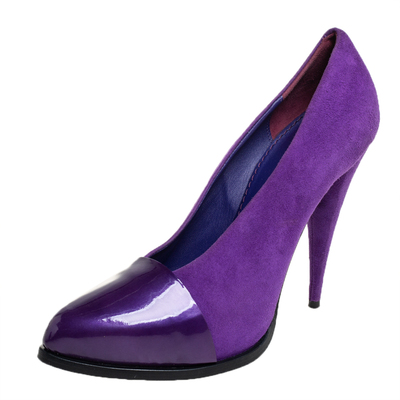 A fine reflection of contemporary style, these pumps from Givenchy are made of suede and patent leather, The pair is defined by a purple hue. Elevated by 12 cm stiletto heels, these pumps can be styled with varied shades of formal as well as casual attire.