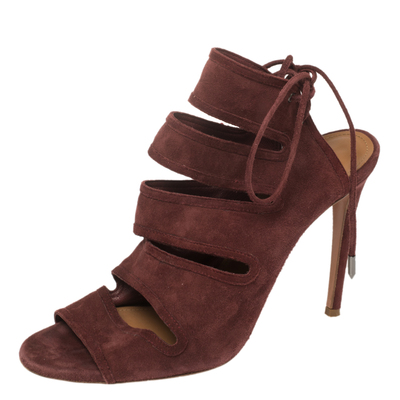 Aquazzura Maroon Suede Sloane Cutout Peep Toe Sandals Size 39 452356 (lpn8539824)