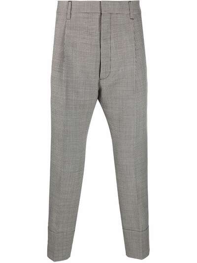 black/white wool mid-rise belt loops concealed front fastening slip pockets to the sides houndstooth pattern two rear buttoned welt pockets tailored design cropped