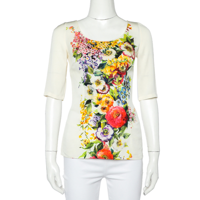 Dolce&Gabbana Cream Floral Printed Roundneck Top S 471840 - 1