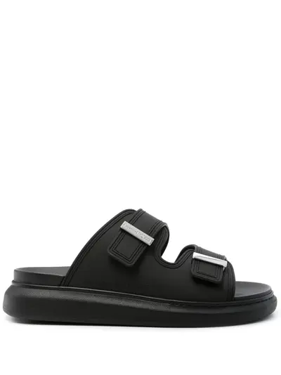 black almond open toe moulded footbed double-strap design engraved logo branded insole chunky rubber sole slip-on style This piece comes complete with a protective dust bag.