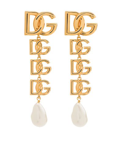 gold-tone multi DG Logo drop plaque faux-pearl embellishment clip-on design These earrings come as a pair.
