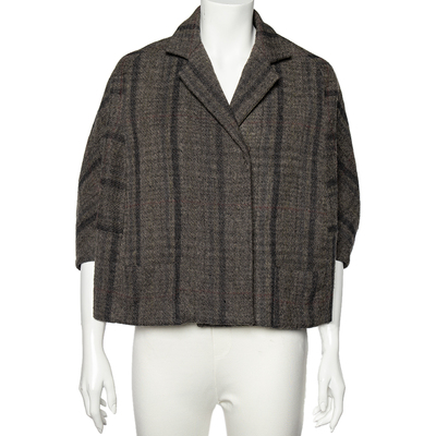 Make a posh yet chic approach to the winter by adding this jacket from Marni. This cropped jacket is tailored using grey checkered wool and displays an oversized fit. It flaunts a button style closure and has two pockets. Seek total comfort with this relaxed, casual jacket.