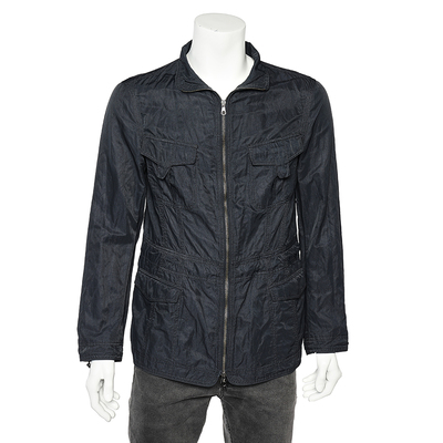 This Emporio Armani jacket exudes class and style no matter what you pair it with. This blue jacket comes with multiple pockets, long sleeves, and a zip fastening. Team this cotton jacket with jeans for a relaxed look.