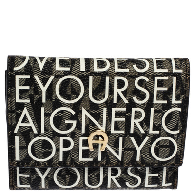 This compact wallet from Aigner is crafted from the signature coated canvas. It is designed with multiple credit card slots and slip compartments for cash. Finished with a logo, this wallet can easily slip into any of the labels chic handbags.