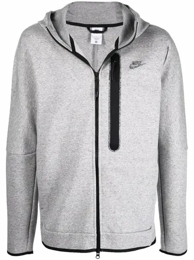 heather-grey/black stretch-cotton mélange effect glitter detailing signature Swoosh logo detail stand-up collar classic hood front zip fastening long sleeves straight hem