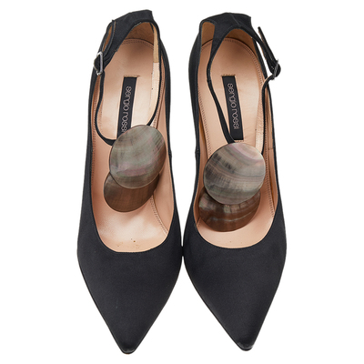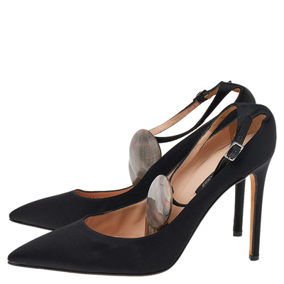Sergio Rossi Black Satin Pointed Toe Ankle Strap Sandals Size 39 541129 (чёрный, lpn10574069)
