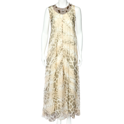 This impeccable dress from Class by Roberto Cavalli will help you make an impressive style statement. This dress has been designed using beige printed silk chiffon with an embellished neck detail highlighting its beauty. It comes with a zip for fastening.