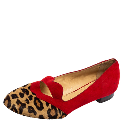 Charlotte Olympia Red/Brown Leopard Print Calfhair and Suede Bisoux Lip Ballet Flats Size 41 555117 (красный, lpn10582737)