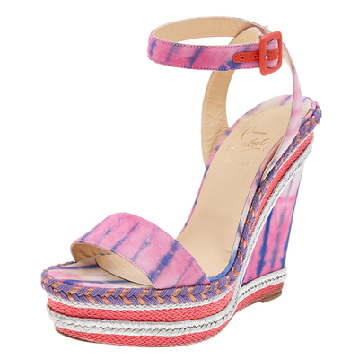 Christian Louboutin Multicolor Fabric New Duplice Ankle Strap Wedges Platform Sandals Size 39 1022512 (lpn10607462)