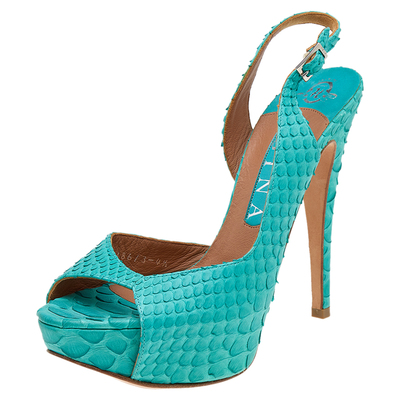 Gina Blue Python Leather Platform Pumps Size 37.5 601097 (голубой, lpn10631854)