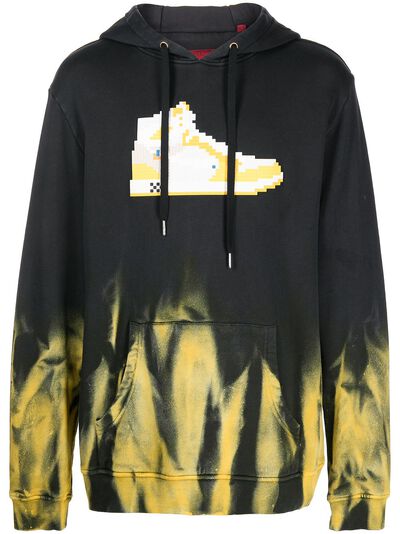 black/yellow cotton graphic print at the chest tie-dye pattern drawstring hood long sleeves front pouch pocket