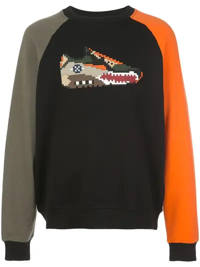 Black, khaki and orange cotton Falcon tri-colour sweatshirt from Mostly Heard Rarely Seen 8-Bit featuring a ribbed crew neck, long length raglan sleeves, a ribbed hem and cuffs, a graphic print and a relaxed fit.