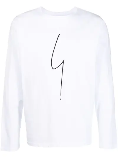 white/black cotton irony mark print slogan print to the side crew neck long sleeves straight hem