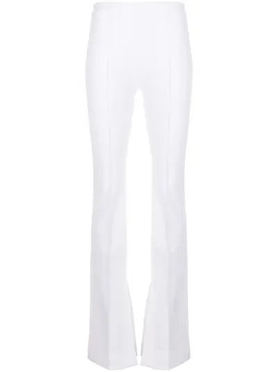 white high waist concealed side zip fastening flared design slit hem detailing