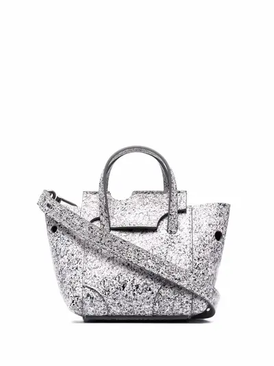 grey leather cut-out detailing logo print to the front marbled pattern two top handles adjustable detachable shoulder strap silver-tone hardware internal slip pocket