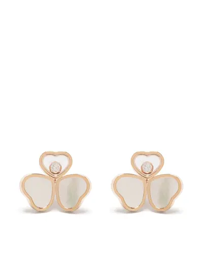 18kt rose gold heart charm mother-of-pearl signature dancing diamond post-back closure for pierced ears Two's company. These earrings come as a pair. Pearls should be the last thing that you put on in the morning and the first thing you take off at night. Avoid contact with perfumes or creams, and simply wipe with a soft cloth to clean. Normal everyday use and external agents may reduce the lustre of gemstones and gold surfaces. To maintain, use specific, non-abrasive products specially meant for cleaning jewellery.