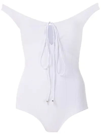 White lace up bodysuit from Amir Slama featuring an off the shoulder design and a slim fit.