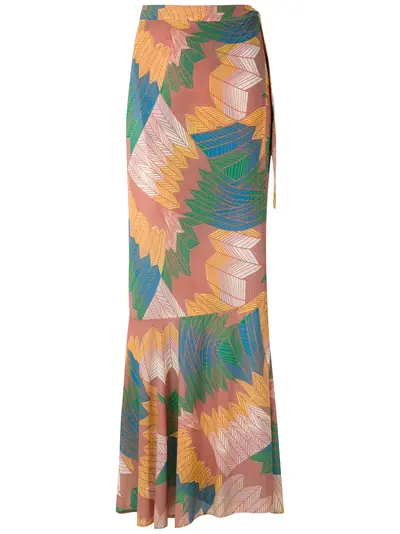 Multicolor Cocar wrap skirt from Amir Slama featuring a mid rise, a waistband, a side tie fastening, a tiered design, a straight fit and an exclusive print.