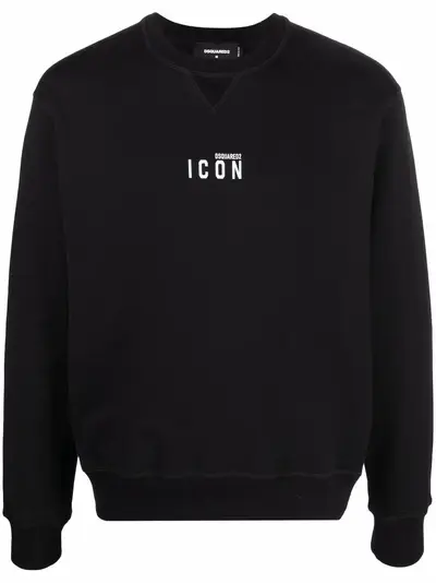 black cotton logo print to the front crew neck long sleeves fitted-cuff sleeves