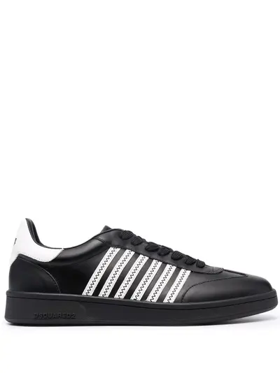 black/white calf leather side stripe detailing zigzag embroidery logo-print tongue front lace-up fastening round toe flat rubber sole branded insole