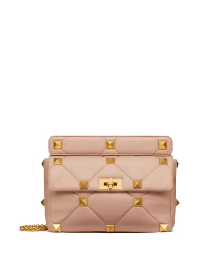 cinnamon pink leather diamond quilting gold-tone Roman Stud embellishments gold-tone hardware single top handle front flap closure twist-lock fastening internal zip-fastening pocket detachable chain-link shoulder strap