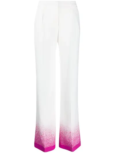 Wearable art is so in. Detailed with a pink paint splatter effect, these trousers from Off-White are the perfect pick for a casual look without compromising on style. For cool girls only. Featuring a concealed front fastening, creases, side pockets and rear welt pockets.