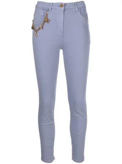 ortensia blue cotton/stretch-cotton front button and zip fastening belt loops two rounded pockets to the sides two rear patch pockets charm detail gold-tone hardware skinny cut