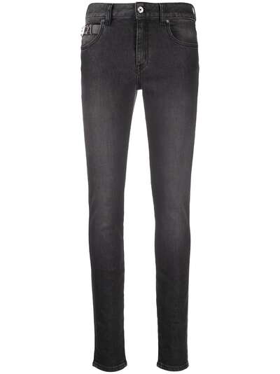 faded black cotton-blend belt loops concealed front fastening classic five pockets logo patch to the front slim fit