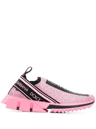 Named after the pretty coastal town in southwestern Italy, Dolce & Gabbana’s Sorrento sneakers are synonymous with the Italian fashion house’s signature, sophisticated style codes. Constructed from a stretch jersey upper with sublimation printing to allow the pores of the fabric to breath, these technical sneakers boast an easy slip-on style courtesy of their pull-tab rear. Presented in pretty pink, these sporty-style sneakers sparkle with their all-over rhinestone embellished design. Featuring a branded lycra insole, a ridged rubber sole for a weightless feel, and a trademark elasticated logo tape in contrast black to the side - as per the designer duo’s ‘logomania’ trend.