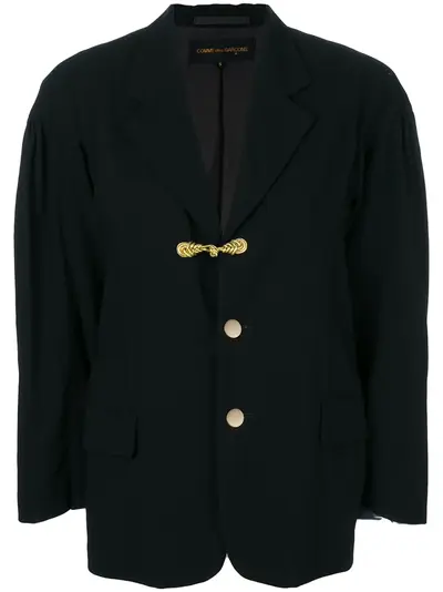 Roughly known as “anti-fashionistas”, CDG confronts contemporary notions of beauty, proposing a disruption through not only reinterpreted garments but a personal attitude altogether. Fashioned from pure black wool in 1998, this unique jacket features classic lapels, a front button fastening along a single toggle fastening, long batwing sleeves with button cuffs, front flap pockets, a straight hem and an interior locker loop. Please note that vintage items are not new and therefore might have minor imperfections.