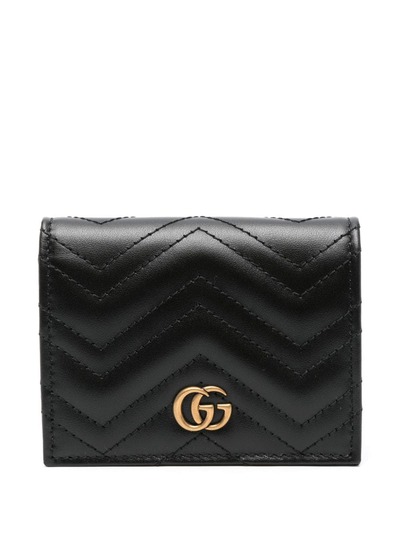 black calf leather smooth grain matelassé effect chevron stitching rectangle shape bi-fold design signature Double G logo logo plaque to the front embroidered logo to the rear note compartment internal card slots debossed internal logo internal zip-fastening pocket antique-effect hardware press-stud fastening This piece comes complete with a protective dust bag.