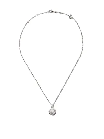 Taking inspiration from the sparkling drops of water in a waterfall, Chopard’s ‘Happy Diamonds’ collection is characterised by moving diamonds that gently dance and twirl to create a joyful cascade of light. This 18kt white gold Happy Diamonds Icons necklace from Chopard features a lobster clasp fastening delicate chain with a round-shaped pendant encasing three freely moving diamonds held between two sapphire crystals creating a delicate and joyful cascade of light. The total diamond content is 0.15ct. This Chopard product is made of 100% Ethical Gold, acquired from responsible sources and verified against international best practices on environmental and social standards.