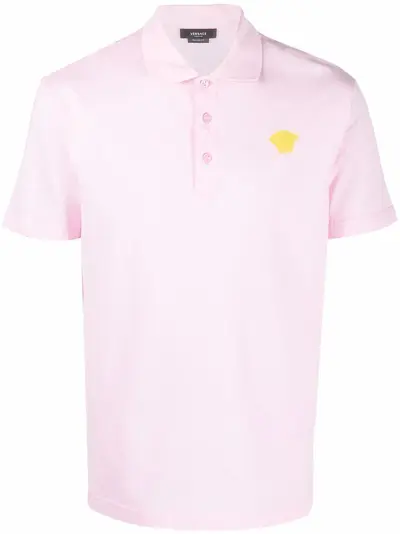 pink cotton logo patch to the front polo collar front button fastening short sleeves