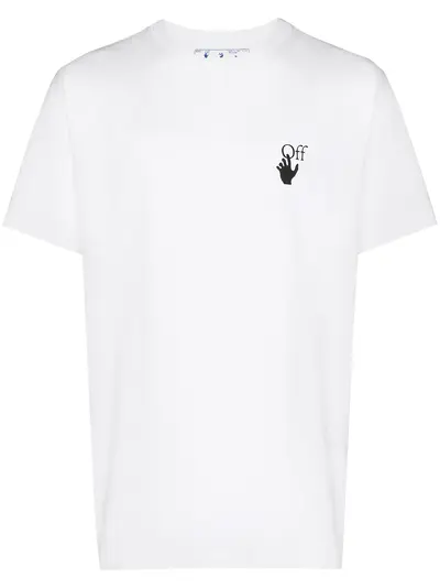white cotton signature Hands Off logo graphic print to the rear crew neck short sleeves straight hem