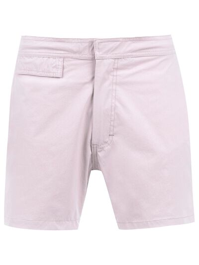 Pink mid rise swim shorts from Amir Slama featuring a waistband and a straight fit.