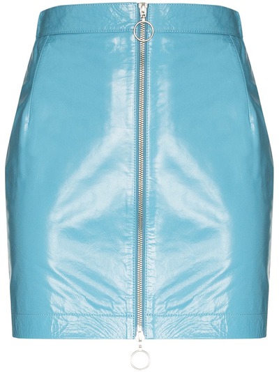 air blue sheepskin high-waisted front zip fastening fitted silhouette silver-tone hardware