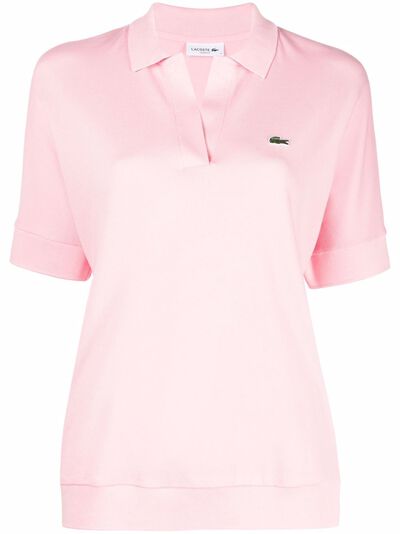 powder pink lyocell-blend logo patch at the chest polo collar V-neck short sleeves straight hem