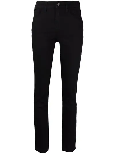 black cotton blend skinny cut mid-rise belt loops front button and zip fastening classic five pockets cropped