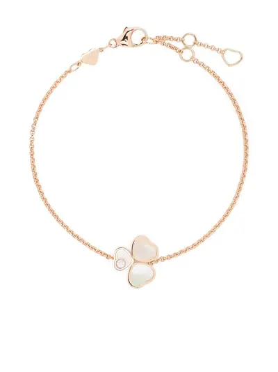 18kt rose gold heart charm signature dancing diamond mother-of-pearl delicate chain lobster claw fastening adjustable fit Pearls should be the last thing that you put on in the morning and the first thing you take off at night. Avoid contact with perfumes or creams, and simply wipe with a soft cloth to clean. Normal everyday use and external agents may reduce the lustre of gemstones and gold surfaces. To maintain, use specific, non-abrasive products specially meant for cleaning jewellery.
