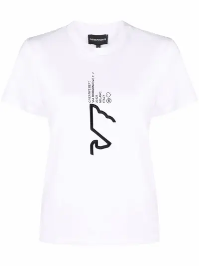 white/black cotton embroidered design logo print to the front crew neck short sleeves tonal stitching straight hem