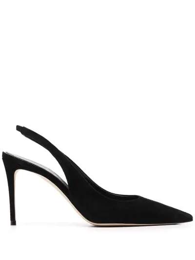 black suede pointed toe slip-on style slingback strap 85mm stiletto heel branded insole leather outsole