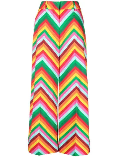 Valentino Ready To Wear multicolour cotton/silk chevron print concealed front fastening belt loops two rear welt pockets wide leg cropped