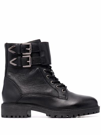 black leather chunky rubber sole front lace-up fastening round toe side buckle fastening side zip fastening