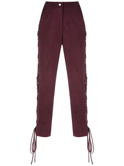 Burgundy Napoles cropped trousers from Olympiah featuring a mid rise, a button & zip fastening, a lace up detail and two front pockets.