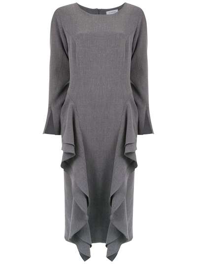 Cinza Chipre midi dress from Olympiah featuring a round neck, a ruffled design, long sleeves and a mid-length.