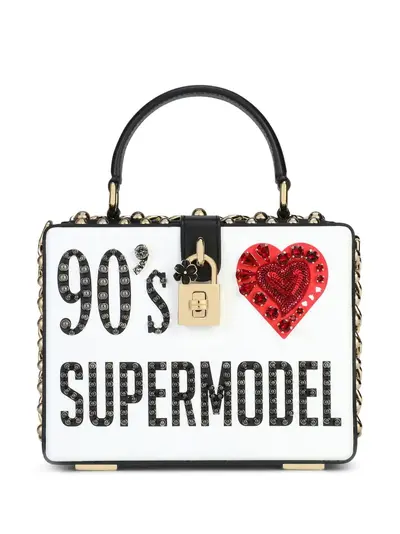 white/multicolour calf leather 90s print to the front 90s print to the rear stud embellishment chain-link detailing sequin detailing single flat top handle adjustable detachable shoulder strap magnetic fastening main compartment internal slip pocket leather lining metal feet