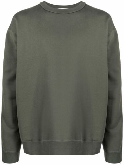 khaki green cotton crew neck drop shoulder long sleeves ribbed cuffs ribbed hem zip details logo print at the sleeve