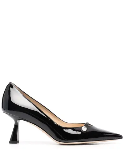 black leather high-shine finish pointed toe thin strap 65mm sculpted heel